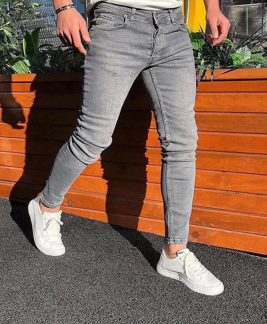 شلوار مردانه اسکینی شلوار مردانه اسکینی فرم تنگ و جذب دارد که برای افراد با اندام لاغر بسیار مناسب است و استایل مدرن و امروزی را به نمایش میگذارد.