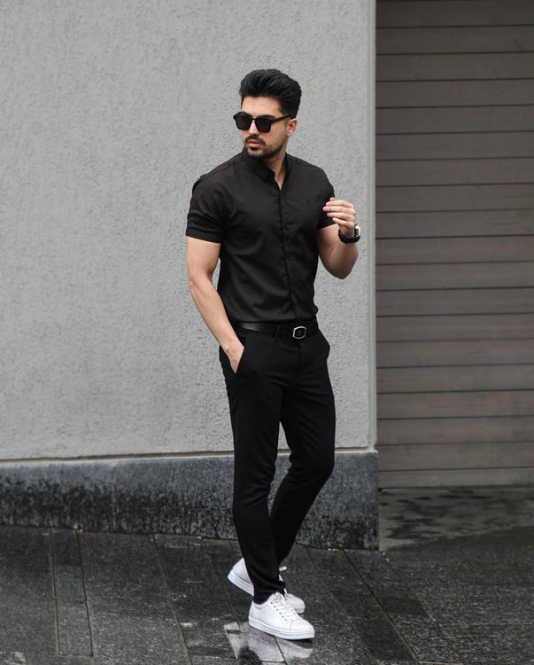 پیراهن مشکی آستین کوتاه تک رنگ مردانه