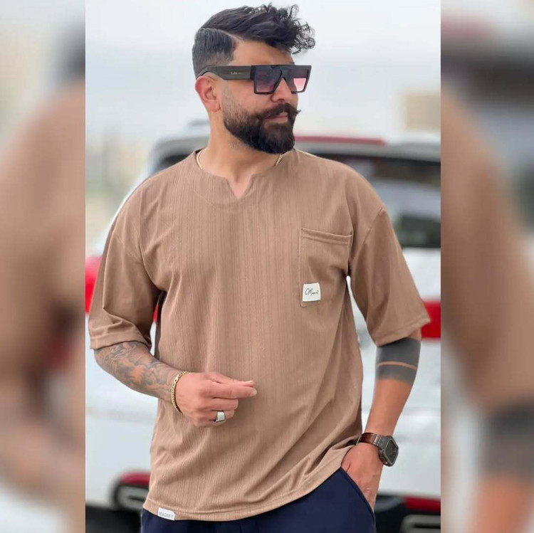 این مدل به دلیل فرم خاص یقهاش، ظاهری شیک و متفاوت به استایل مردانه میبخشد. برشهای آزاد و راحت، بدون دکمه در قسمت یقه، باعث میشود این تیشرت انتخابی مناسب برای روزهای گرم سال باشد.