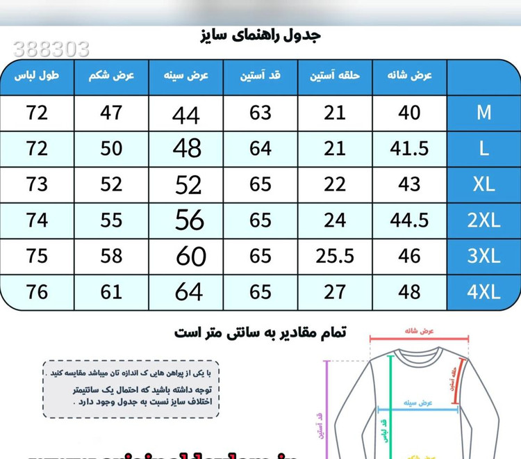 این محصول در سایزهای M تا 3XL عرضه میشود و مناسب افراد با اندام مختلف است.