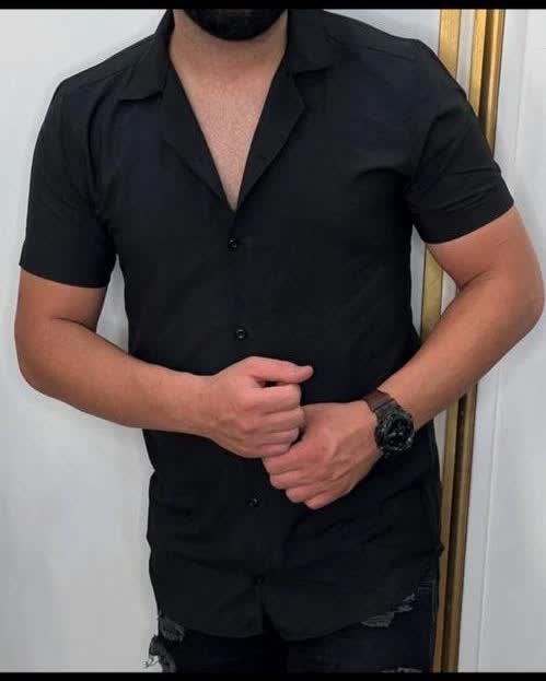 پیراهن نخی آستین کوتاه مردانه مشکی رنگ با تنخوری و کیفیتی بسیار عالی