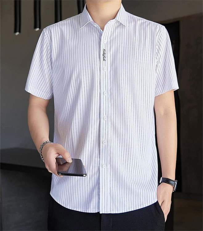 الگوی راه راه روی پیراهن، طرحی کلاسیک و همیشگی است که هرگز از مد نمیافتد و با هر سبک پوششی به راحتی هماهنگ میشود.