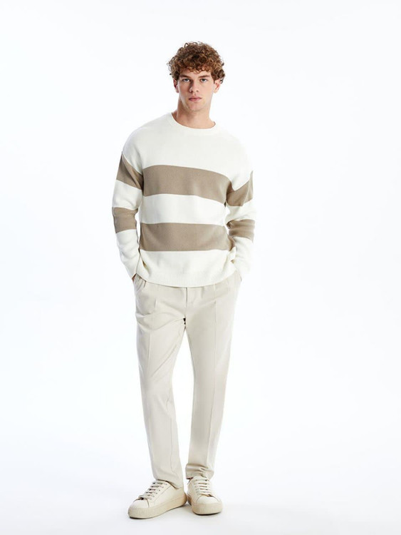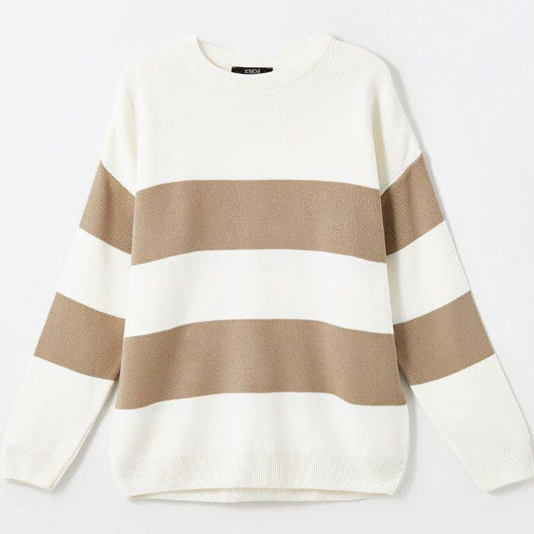 🤍 بافت وینگر ارجینال سفید با راهراه قهوهای | ترکیب ظرافت و استایل زمستانی