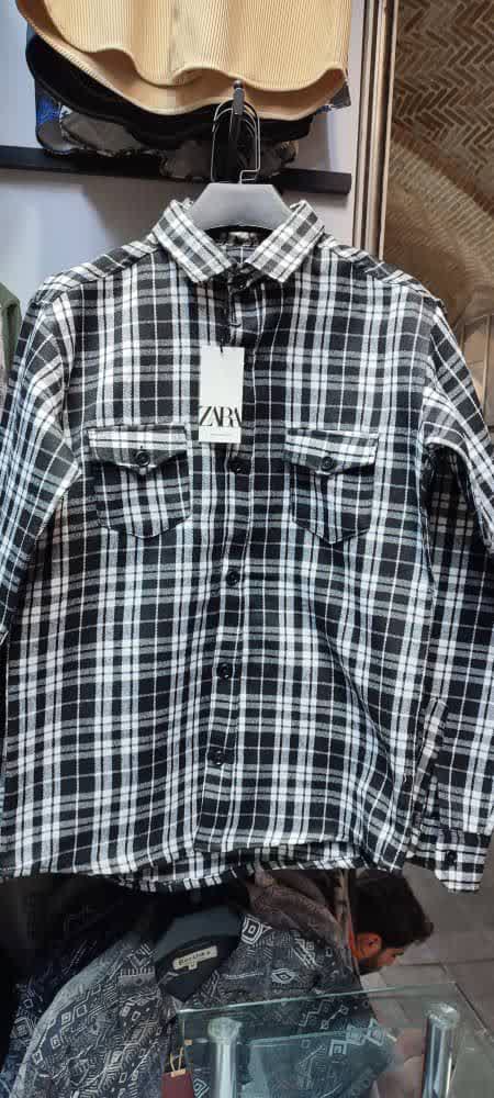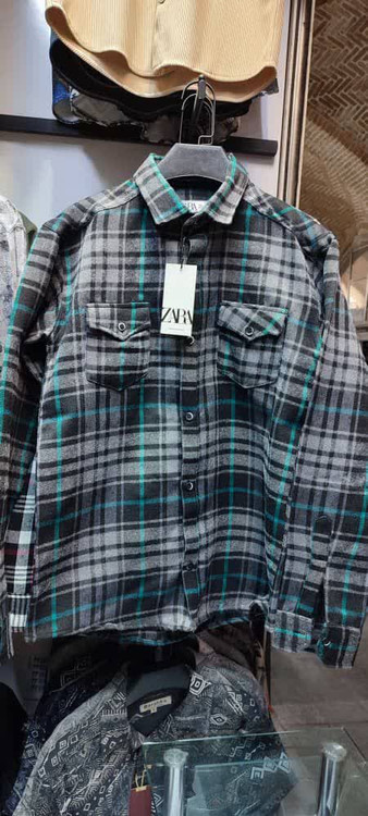 پیراهن پشمی مردانه اورجینال ZARA چهارخانه دو جیب