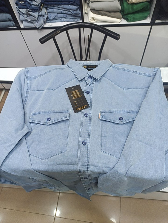 پیراهن لی مردانه آستین بلند دو جیب پارچه ترک