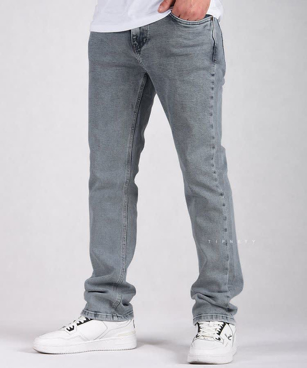 شلوار جین راسته طوسی با فیت کلاسیک Straight Fit طراحی شده است که برای انواع فرمهای بدنی مناسب است.
