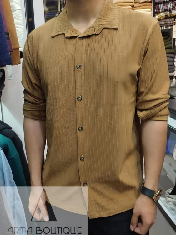 Moroccan Warm-Weave Long-Sleeve Shirt – Herringbone Texture, Unisex